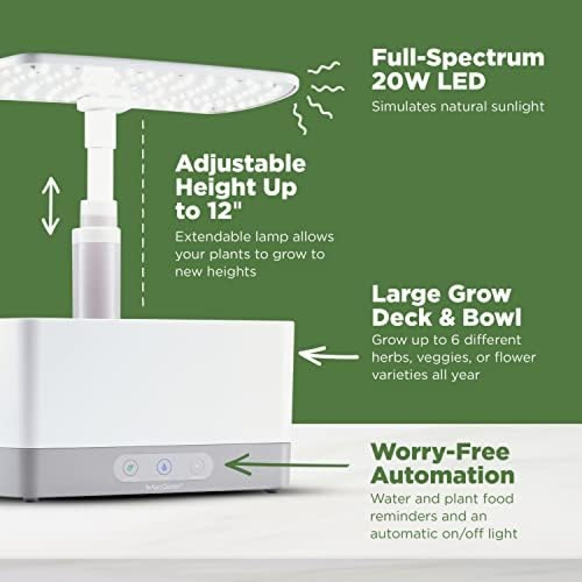 ROOM FOR 6 PLANTS: This compact countertop garden features a spacious grow deck and water bowl so you can grow 6 different live plants at once, all up to 12 inches tall