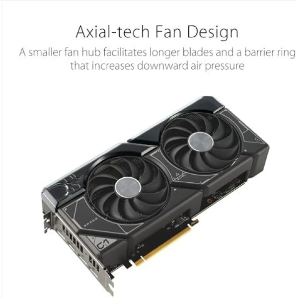 Axial-tech fan design features a smaller fan hub that facilitates longer blades and a barrier ring that increases downward air pressure.