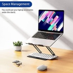 Keep Laptop Cool: the open aluminum design provides good ventilation and airflow to prevent your laptop from overheating. Thanks to the open design, you could also keep your laptop peripherals under the stand, such as keyboard, mouse and other office items.