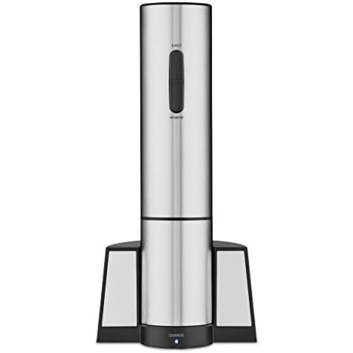The Cuisinart Electric Wine Opener uncorks up to 50 bottles on one charge, and recharges quickly with a NiMH battery pack and sleek, compact charging base. The wine opener powers through synthetic and natural corks without breakage – no more cork floating in the wine glass! With two buttons, it’s easy to operate: Simply press “Remove” to uncork the wine, and “Eject” to release the cork from the screw. Its sleek stainless steel design looks great on a counter or wet bar, and wipes clean easily. A foil cutter ensures clean openings and drip-free pours, and neatly stores inside the charging base when not in use. This is the perfect gift for wine lovers, entertainers, and anyone who appreciates convenience.