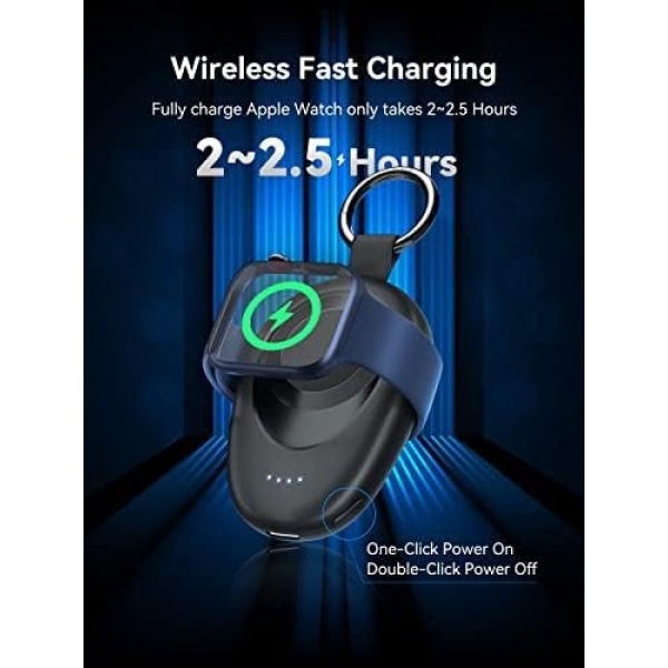 【Wireless Fast Charging】 Our cutting-edge wireless charger for Apple Watch offers fast charging experience, with just 2-2.5 hours (3.5 hours for Ultra/Ultra 2), you can fully charge your Apple Watch 1-9/SE, and recharge the power bank in approximately 2 hours. Simply click the side button to start wireless charging and double-click to stop.
