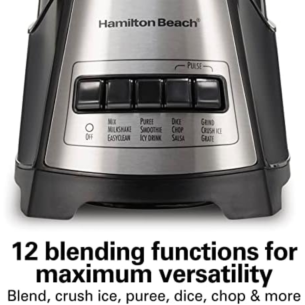 12 BLENDING FUNCTIONS FOR MAXIMUM VERSATILITY: This multi-function blender has 12 functions controlled by 5 simple buttons on the easy-to-read control panel; It blends and crushes ice for smoothies and milkshakes, purees, dices, chops and more