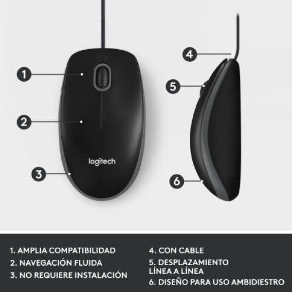 Logitech M100 Corded Mouse – Wired USB Mouse for Computers and Laptops