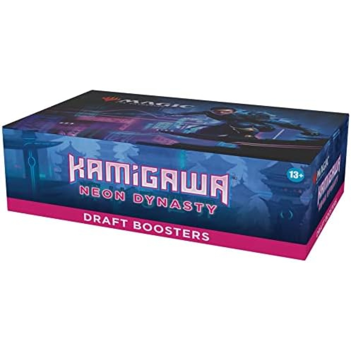 The Kamigawa: Neon Dynasty Draft Booster Box contains 36 Kamigawa: Neon Dynasty Draft Boosters (540 cards total). Each Draft Booster contains 15 Magic cards and 1 token, Helper card, or ad card, with a combination of 1 card of rarity Rare or higher, 3–4 Uncommons, 9–10 Common cards, and 1 Land card. A traditional foil card of any rarity replaces a Common in 33% of Kamigawa: Neon Dynasty Draft Boosters.