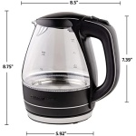 This kettle features a stainless steel concealed heating element to help prevent extra objectionable mineral deposits such as nickel found in your drinking water. It also features a flip-back lid that opens with one touch, and an adjustable opening wide enough to fit your fist for convenient filling and cleaning. For safety purposes, it’s equipped with Automatic Shut-Off upon boiling and Boil-Dry Protection Technology which automatically shuts off the kettle when no water is in the carafe. It also comes with a secure locking lid, LED indicator lights, a washable filter, and a comfortable stay-cool handle and button. It’s also easy to store—its 30 inch cord wraps neatly into its base for a clutter-free space.