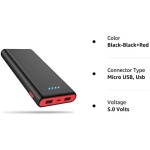 Dual USB Charging & Fast Recharge — The Dual USB ports (2.1A+1A) to charge your two devices simultaneously, Fully recharges itself in 8~12 hours with 2.1A input charger, or 12-24 hours with 1A charger;