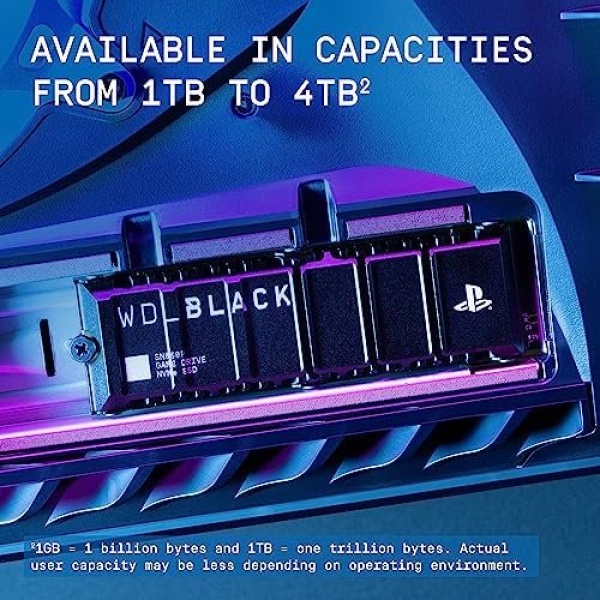 With capacities ranging from 1TB to 4TB[2] you can add enough additional PS5 storage to your console to store more of your favorite games. [2]1GB = 1 billion bytes and 1TB = one trillion bytes. Actual user capacity may be less depending on operating environment.