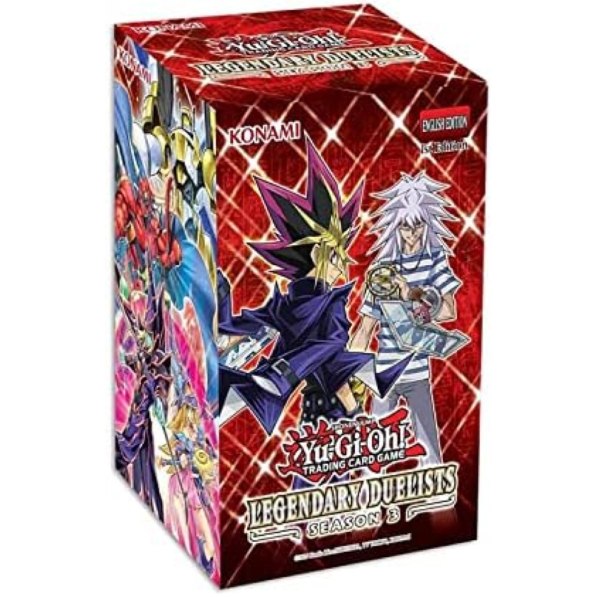 Legendary Duelists: Season 3 collects cards for heroes, villains, and heroes-turned-villains, all in one place! Featuring cards introduced in Legendary Duelists: Immortal Destiny and Legendary Duelists: Magical Hero, Legendary Duelists: Season 3 is the go-to set for fans of Dark Magician, HERO, Synchrons, and more!Each box of Legendary Duelists: Season 3 includes 1 Secret Rare – a rarity that wasn’t available in Immortal Destiny or Magical Hero – as well as 6 Ultra Rares. For this release, because it has a double dose of Jaden, the Ultra Rares will come in the colors of the 3 Duel Academy dorms: 2 red Ultra Rares for Slifer Red, 2 blue Ultra Rares for Obelisk Blue, and 2 standard Ultra Rares for Ra Yellow. And as a special bonus, each Legendary Duelists: Season 3 box will also contain one of several collectible dice featuring famous monsters or symbols associated with Yugi, Jaden, and Yusei.